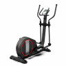Эллиптический тренажер с задним расположением маховика для домашнего использования. Тренировка на эллиптическом тренажере - это прекрасная альтернатива бегу трусцой или ходьбе, с разницей в высоком сжигании калорий. Благодаря интенсивному движению рук верхние участки тела напрягаются, все тело укрепляется, повышается эффективность тренировки. Среднегабаритная модель с магнитной нагрузкой - система сопротивления с постоянным магнитом и тончайшей настройкой интенсивности. Регулировка нагрузки с помощью ручного привода на стойке тренажера. Консоль с монохромным LCD-дисплеем отображает все необходимые показатели во время тренировки. Измерение пульса осуществляется с помощью встроенных датчиков. Мощная рама тренажера, усиленная конструкция из стального профиля, позволит заниматься пользователю весом до 120 кг. Широкие педали с нескользящей вставкой. Транспортировочные колеса в передней части обеспечивают свободное перемещение тренажера по комнате. Задний стабилизатор с регулировкой положения на неровной поверхности. Показания консоли:   время, расстояние, количество сожженных калорий, скорость, пульс