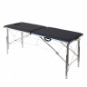 Двухсекционная складная кушетка с системой тросов. Ножки из алюминия. Складной массажный стол с системой тросов и ножками из алюминиевого сплава для облегчения веса стола. Таким образом, его малый вес и компактная система складывания позволяют с удобством использовать стол в качестве мобильного.