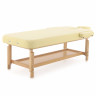 Рама модели из натурального бука выдерживает нагрузку до 200 кг. Гарантия на нее действует целых 3 года. Под ложем располагается широкая полка для разнообразных аксессуаров, полотенец и т.д., изготовленная из того же материала, что и рама. А на одном его краю находится дополнительная секция с вырезом для лица.